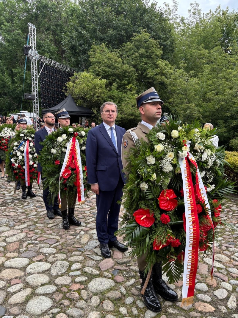Następnie upamiętniając żołnierzy Armii Krajowej poległych w czasie Powstania Warszawskiego Prezes NSA wziął udział w uroczystości Godzina „W” przy pomniku Gloria Victis na Cmentarzu Wojskowym na Powązkach.